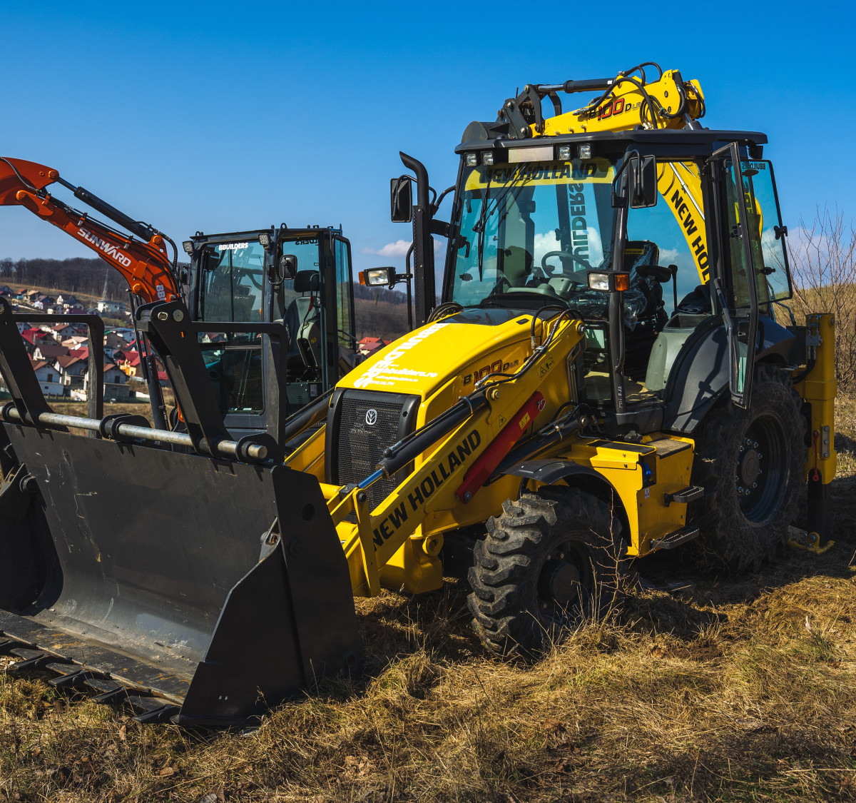 Buldoexcavator cu următoarele accesorii: