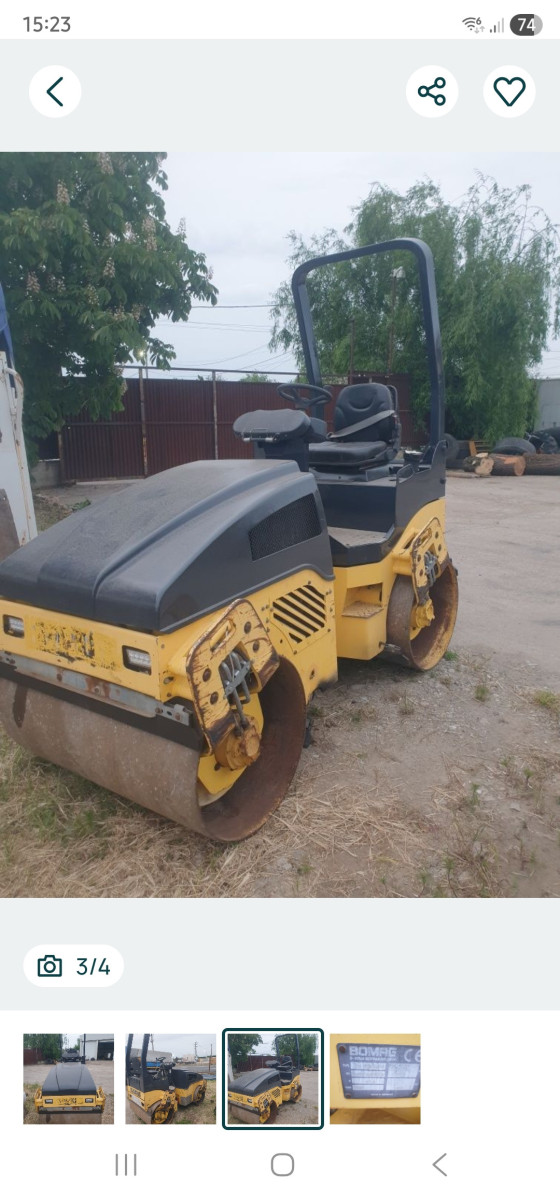 Închiriez Bomag BW 120 AD-4, compactor tandem ideal pentru asfalt, alei, parcări și lucrări de reparații.