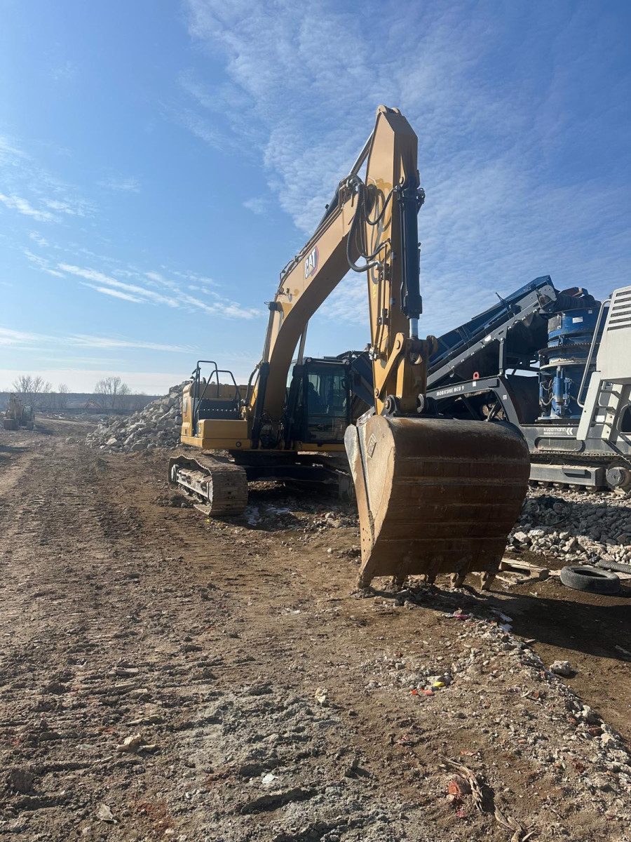 Excavator de generatie noua CAT de 20 T, 25 T, 30 T, 36 T. Utilaje echipate in functie de necesitati: foarfeca demolare, pulverizator, picon, greifer, cupa.