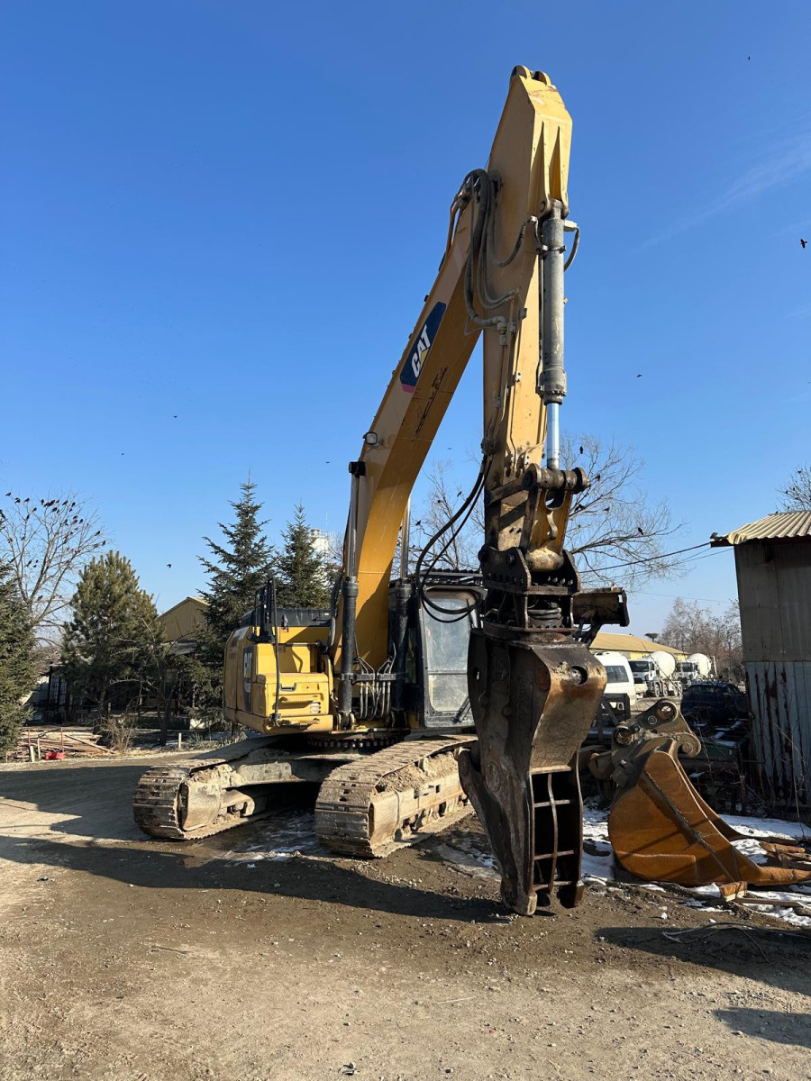 Excavator de generatie noua CAT de 20 T, 25 T, 30 T, 36 T. Utilaje echipate in functie de necesitati: foarfeca demolare, pulverizator, picon, greifer, cupa.