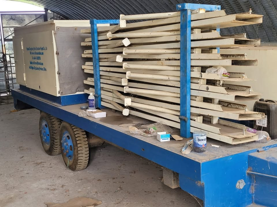 Hangarul in care este depozitat (pozele) este dovada clara ca acest utilaj functioneaza perfect. Putem asigura si asistenta tehnica la prima utilizare. Cumparatorul poate recupara investitia chiar din primul hangar realizat.